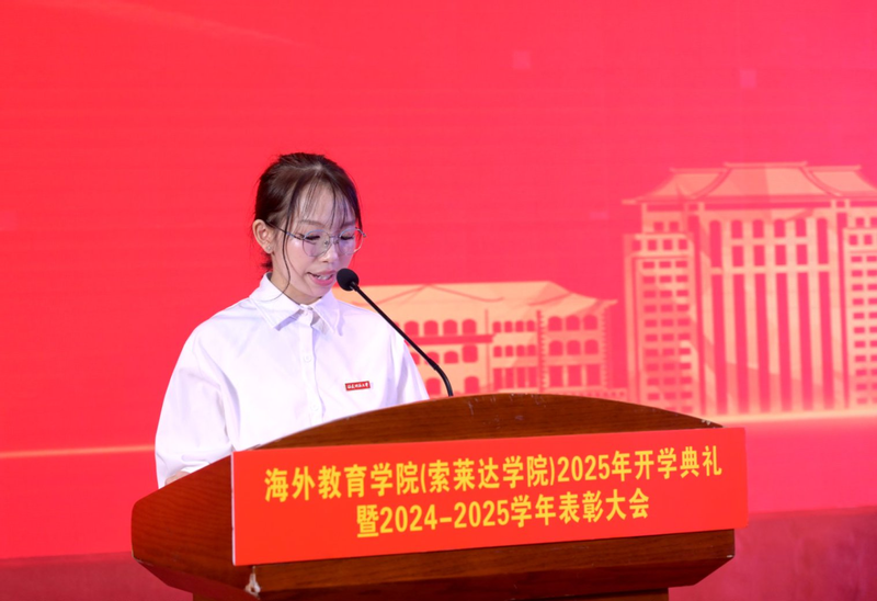 典礼上,汪敏锋教授作为教师代表发言,对新生表示热烈欢迎,强调国际中文教育的重要性,并鼓励大家在大学中寻找本领、热爱、包容与自我,成长为中华文化的传播者和中外友谊的桥梁。老生代表李邹沅结合自身经历,从“扎实学识筑牢根基”“广泛实践拓展能力”和“使命担当引领成长”三方面分享体会,鼓励新生勇于实践、敢于担当。内地生新生代表柯思颖、港澳台侨新生代表许铃淇以及留学生新生代表黄氏玉碧分别从各自角度阐述了对大学生活的理解,表达对求学机会的珍惜、对大学生活的期待,以及面对挑战时的积极态度,共同希望通过学习与实践拓宽视野、实现自我成长的决心, 以及面对挑战时的积极态度,通过学习与实践拓宽视野、实现自我成长的决心。