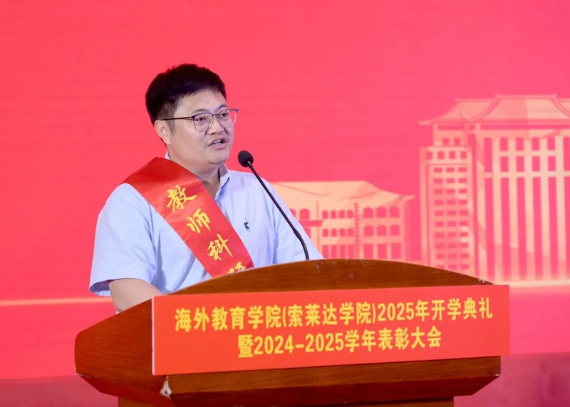 9月8日,海外教育学院(索莱达学院)2025年开学典礼暨2024-2025学年表彰大会在福建师范大学旗山校区图书馆学术大讲堂举行。海外教育学院(索莱达学院)院长朱峰,关工委主任、原院长沙平,党委副书记(主持工作)张予锋,副院长朱鹏颐、章石芳、唐哲文,工会主席肖祥忠,各科室、教研室主任,学院教师代表,各年级辅导员,全体受表彰师生代表及2025级全体新生出席本次大会,大会由饶晓勇老师主持。