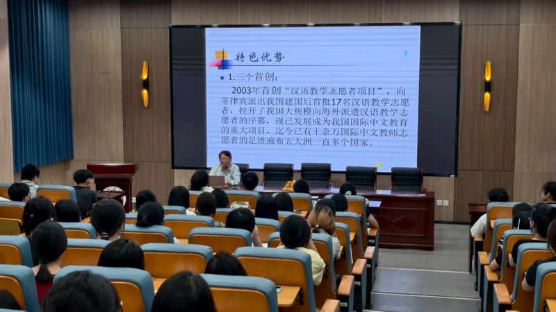 2025年9月10日正值我国第41个教师节,海外教育学院(索莱达学院)关工委主任沙平教授为学院2025级新生开设了一场题为《回首征程续创辉煌》的院史讲座。沙平教授结合我国国际中文教育的大背景和我校海外教育事业的发展历程,讲述了海外教育学院(索莱达学院)创立二十多年来从3名教师、两位数学生起步,经过艰苦努力,敢于创新、勇于实践,发展成为如今在全国近400所高校同类专业中软科排名第9位、海内外各类学生2千多名、拥有16个国家和部委级高水平科教平台和国家一流本科专业,成为省内龙头、国内知名的海外教育学院。尤其是在国际中文教育和推广领域,学院的“3个全国首创”(向国外派遣汉语教学志愿者、与国外院校合作创办中文师范专业、国外远程汉语教学)为我国的国际中文教育和推广事业做出了突出贡献,提升了我校在海外的知名度和美誉度。