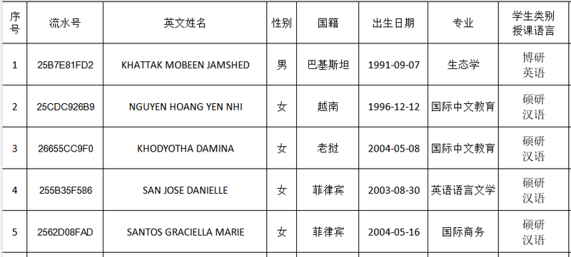 根据《关于申报2026/2027学年中国政府奖学金“高水平研究生”项目的通知》(留金来招[2025]72号)要求,经研究,我校推荐KHATTAK MOBEEN JAMSHED等5名学生作为2026/2027学年中国政府奖学金“高水平研究生”项目人选。